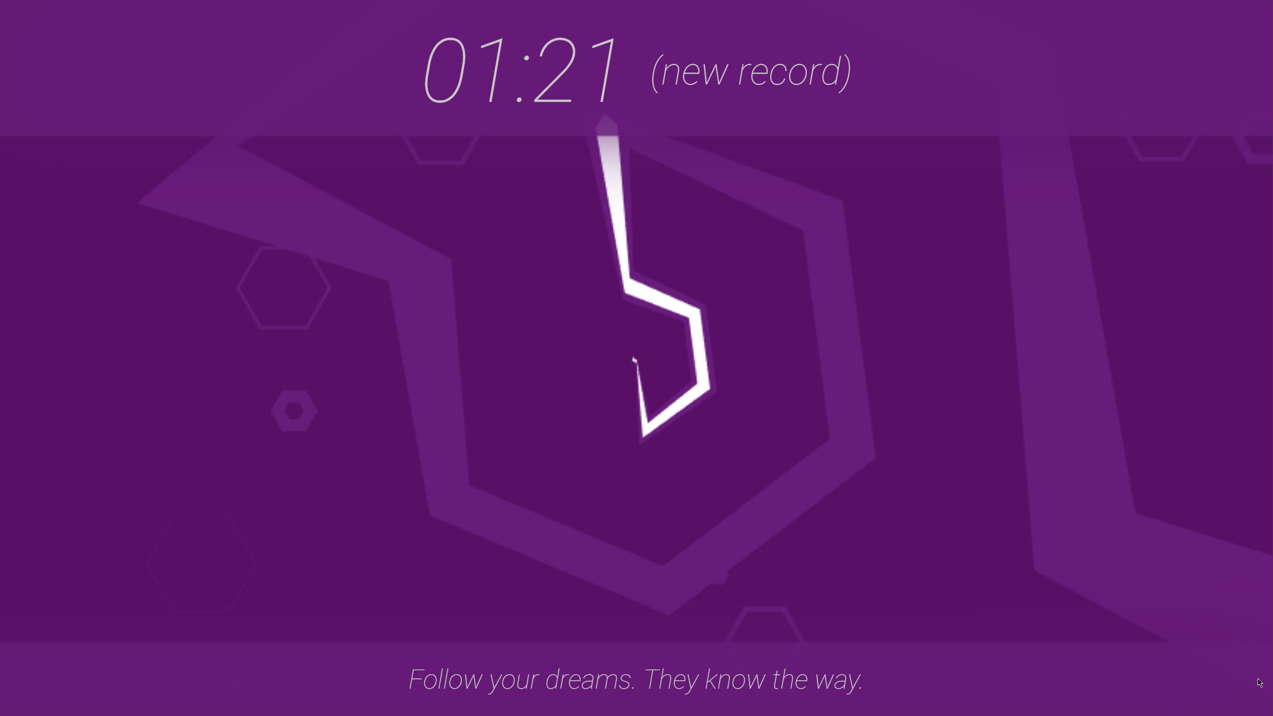 1:02 on my first attempt after understanding the controls lmao, took like 10mins to beat it tho (got 1:07), i think having played super hexagon prob helps me somewhat